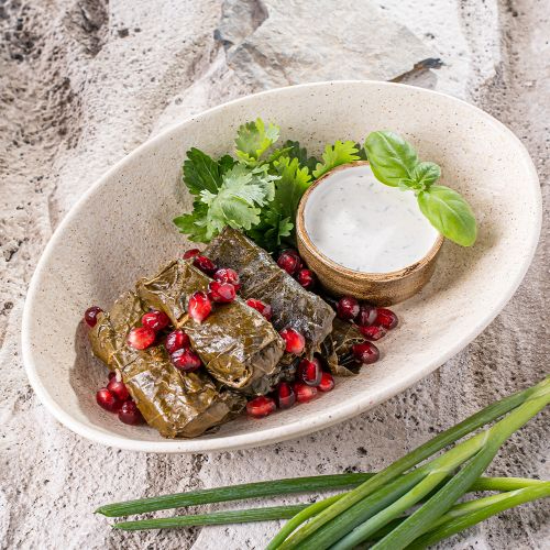 Рулетики из баклажанов, корнишоны, маринованные черри, хоровац, сыр фета, оливки и вяленые томаты
